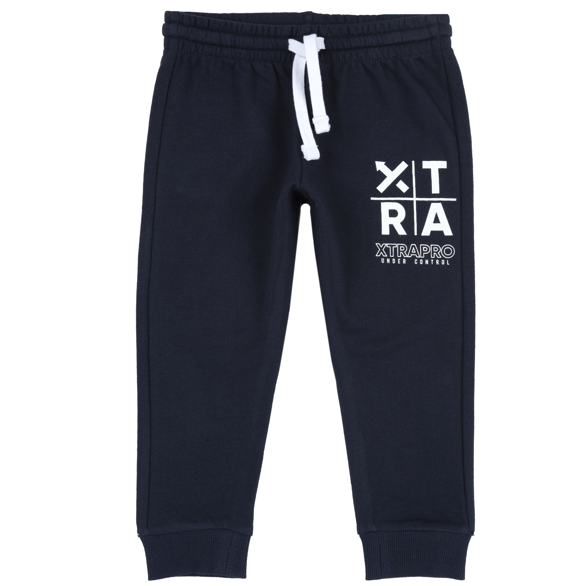 Спортивні брюки “Tornado” для хлопчика.Особливості:матеріал – 100% бавовна;еластичний пояс;регулюються по талії за допомогою шнурка;декоровані принтом;низ брюк – широкий манжет. Цвет:Синій|Размер:104, 98 Chicco