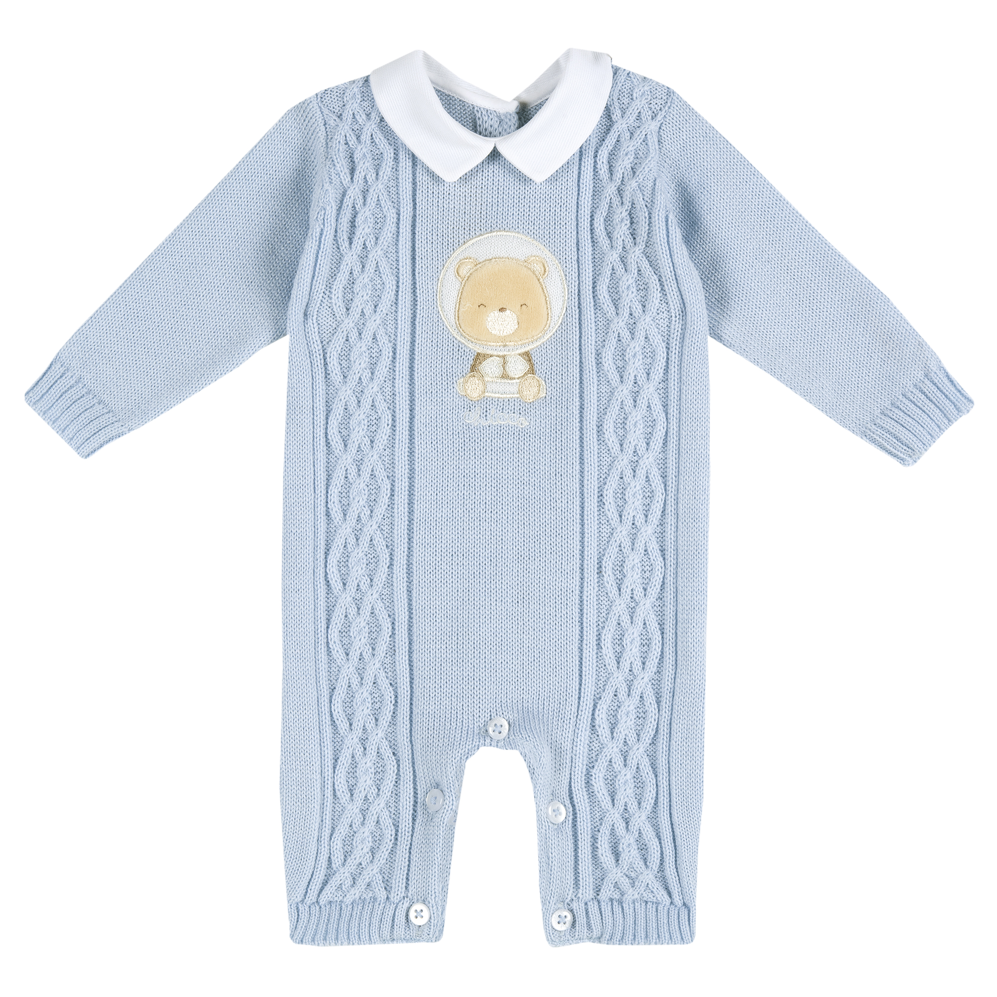 В’язаний комбінезон Sandov для хлопчика.Особливості: сертифікований OEKO-TEX®;декорований аплікацією та ажурною в’язкою;на спинці застібається на ґудзики;передбачені ґудзики вздовж ніжок для швидкої зміни підгузка;фірмова упаковка.Гарний та елегантний в’язаний комбінезон Sandov подарує вашій дитині тепло і затишок з перших днів життя. Комбінезон ідеальний для урочистих заходів, таких як виписка з пологового будинку, і як повсякденний одяг. Цвет:Блакитний|Размер:56 Chicco