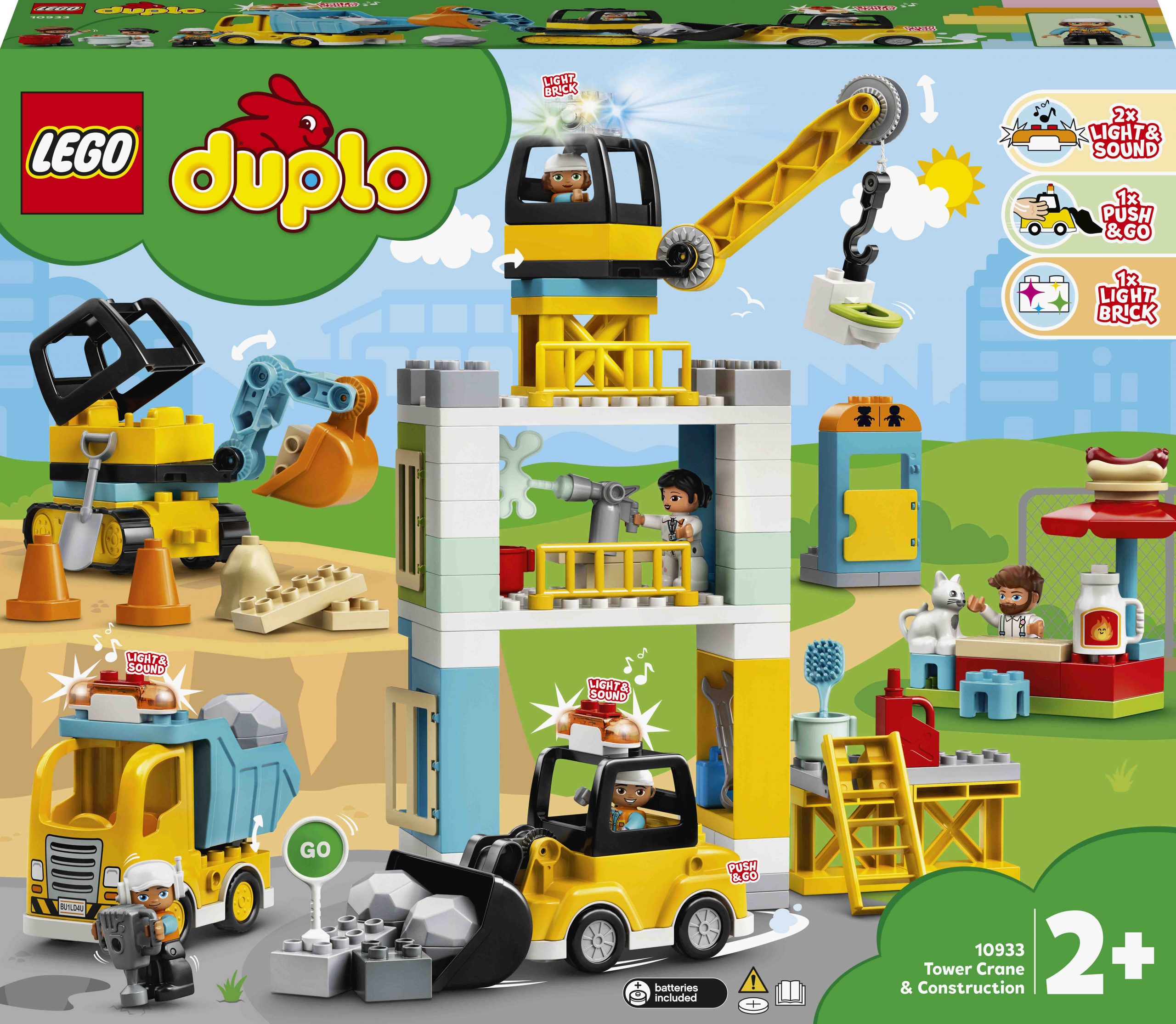 Конструктор LEGO Duplo Підйомний кран і будівництво — чудовий подарунок для дитини, яка захоплюється міською спецтехнікою та темою створення нових споруд. Малюк зможе приєднатися до команди будівельників, використовуючи щоразу нових персонажів — жінку-маляра, двох будівельників, водія кранів чи продавця хот-догів. Нумо швидше грати!Із 123 деталей дитина складе будівельний майданчик та відтворить робочий процес за допомогою екскаватора, бульдозера, самоскида, крана й фігурок працівників. А коли настане час обіду, уся команда зможе смачно попоїсти хот-догами у місцевого продавця. Техніка має функції світла, звуків та рухомої лебідки.Головний корпус вежі із краном мають розміри 40 х 20 х 25 см. Техніка чудово поміщається у руках дитини, а деталі зроблені з якісного та барвистого пластику.Світло та звуки працюють від 3 батарейок LR41 та 3 батарейок LR44, які є у наборі.У комплекті: деталі для будівництва вежі;самоскид;екскаватор;кран;бульдозер;5 міні фігурок.Гра із конструктором LEGO DUPLO розвиває уяву, увагу, творчі здібності, фантазію і дрібну моторику.Рекомендовано для дітей від 2-х років. LEGO