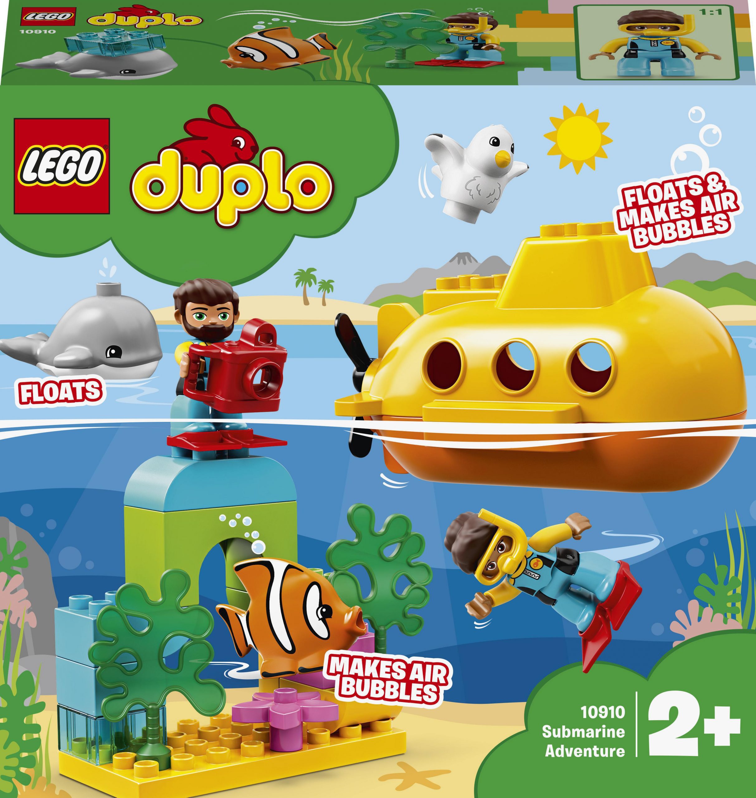 Вирушайте з малюком в захопливу подорож разом з новим ігровим набором Подорож на підводному човні від торгової марки Leggo Duplo. Комплект чудово підійде для ванної та непосидючого малюка. Дитина знайде в комплекті: барвистий підводний човен, який кумедно плаває на поверхні води;будівельну арку з морськими водоростями;кита, який ковзає по водній гладі;рибу-клоуна, яка кумедно пускає бульбашки;чайку, яка літає над мандрівниками;2 фігурки аквалангістів;аксесуари для тематичної гри. Всього набір містить 24 елементи з сертифікованого та нешкідливого пластику з хорошими експлуатаційними властивостями. Гра з конструктором прекрасно розвиває уяву, дрібну моторику та логічне мислення. Рекомендований вік — від 2-х років. LEGO