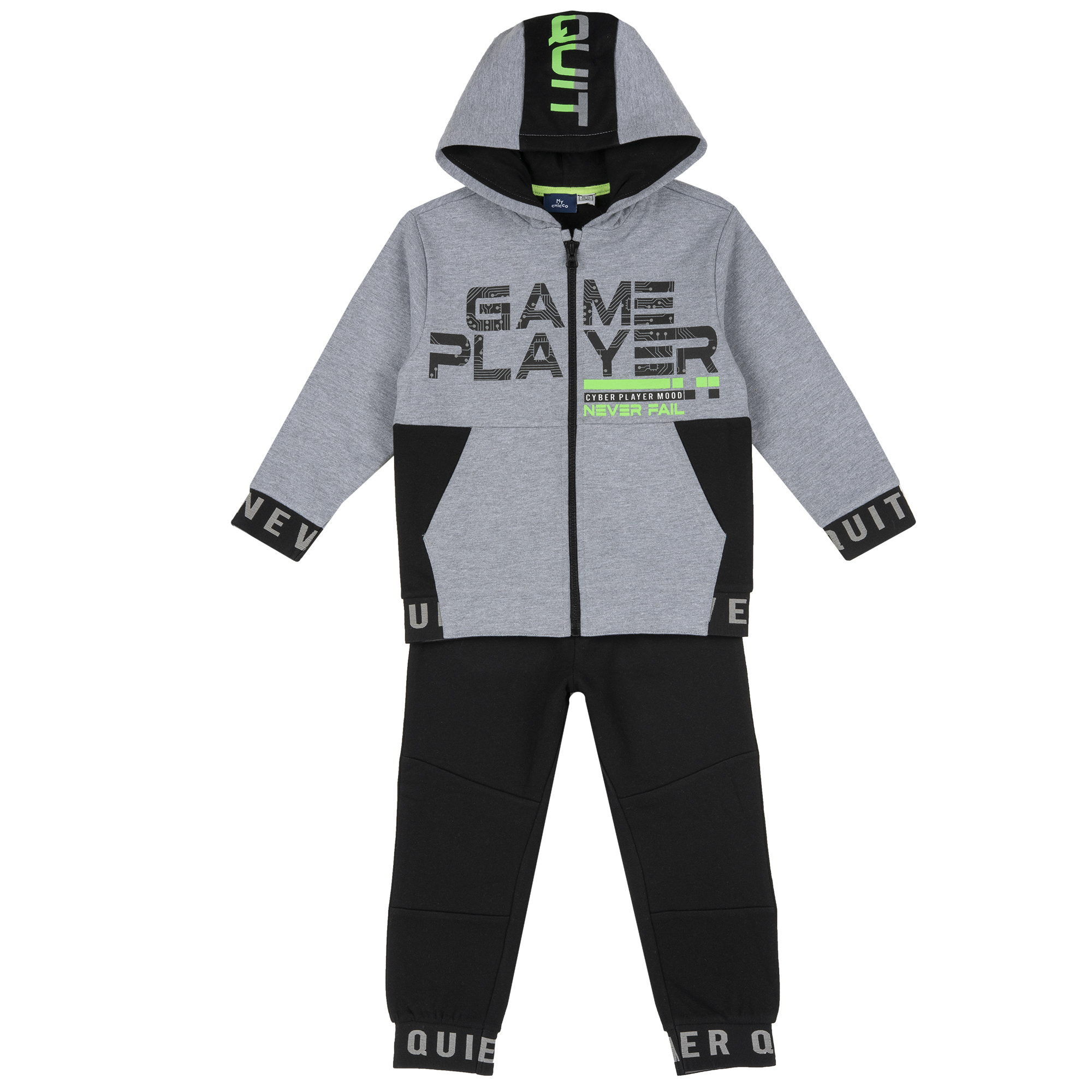 Утеплений спортивний костюм “Vincenzo” для хлопчика, складається із кардигана з капюшоном та брюк. Особливості джемпера: всередині – м’який мікрофліс; застібається на “блискавку”; декорований принтом; на рукавах і по низу широкий еластичний манжет. Особливості брюк: всередині – м’який мікрофліс; еластичний пояс; декоровані принтом. Цвет:Сірий|Размер:110, 122, 104, 98, 116, 140, 128, 152 Chicco