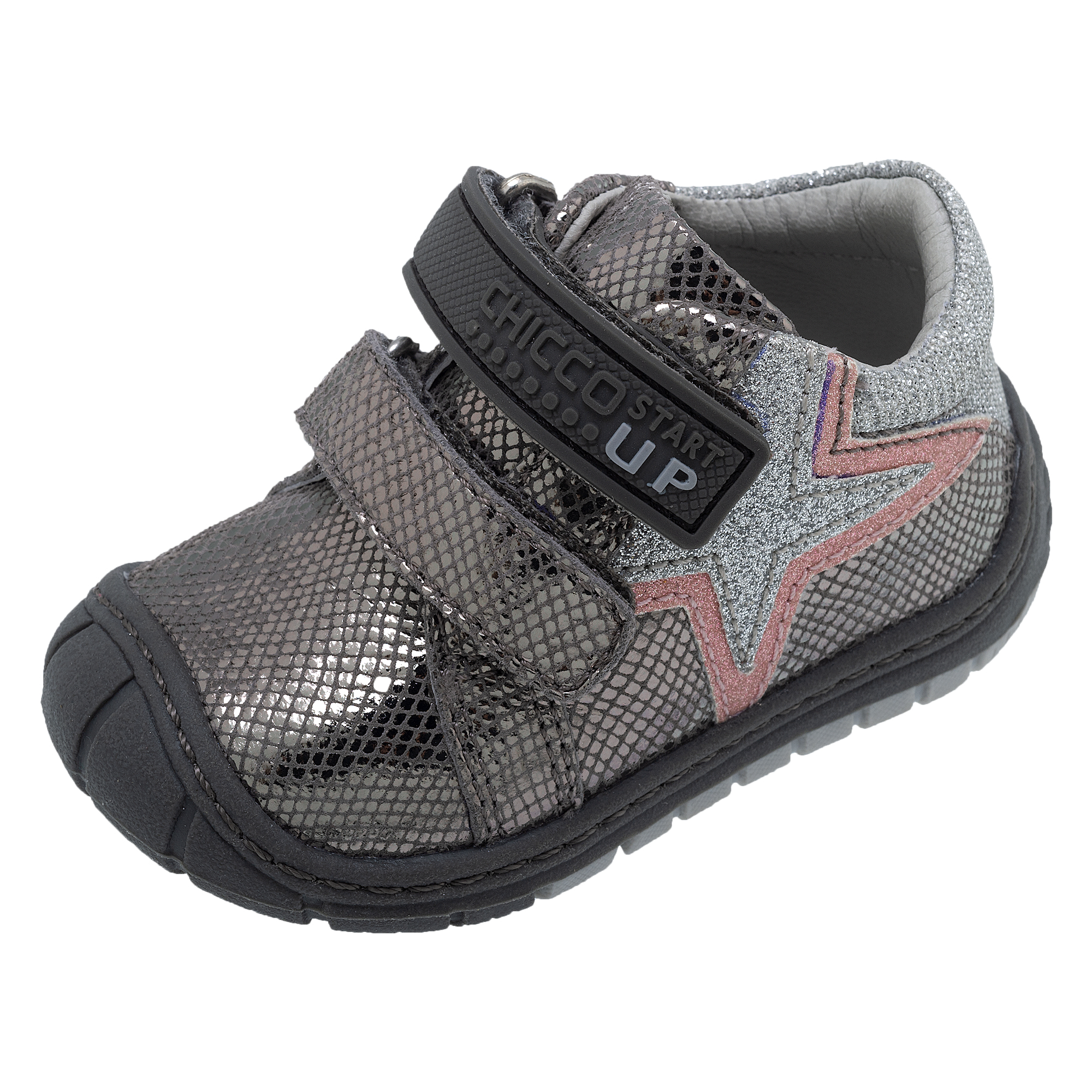 Напівчеревики для дівчинки Chicco Start UP Dixy з декором та застібкою липучкою.Особливості:Flex-Zone® – не слизька підошва, яка повторює фізіологічні вигини стопи;шкіряна устілка;закруглений захищений носок;ущільнена п’ята – захищає від ударів і забезпечує підтримку стопи.Напівчеревики Dixy легкі та зручні, забезпечують природні рухи дитини в період повзання і до перших кроків.Chicco Start UP – це ергономічне взуття для дітей від 5 місяців, досліджена в обсерваторії Chicco спільно з доктором Мауро Теста (вчений-біомеханік, який впроваджує нові технології у світі дитячого взуття). Цвет:Сірий|Размер:19 Chicco